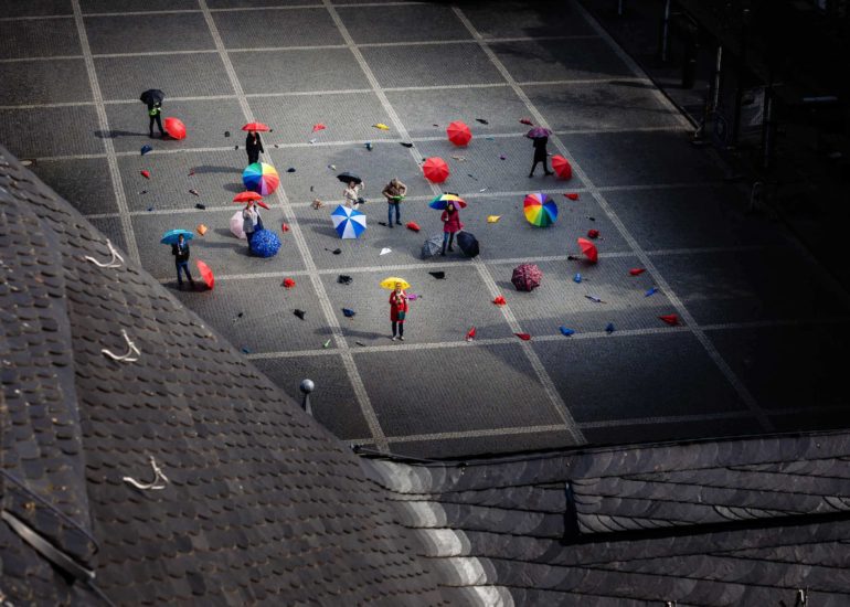 Fotos für die Aktion ‚Kunst- und Kulturschaffende aus Aachen spannen den Rettungsschirm auf‘. In einer eindringlichen Aktion wurden heute 100 symbolische „Rettungsschirme“, stellvertretend für...